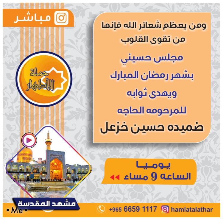 مجلس رمضاني يومياً يهدى ثوابه لروح والدتي المرحومة الحاجة/ ضميده حسين خزعل